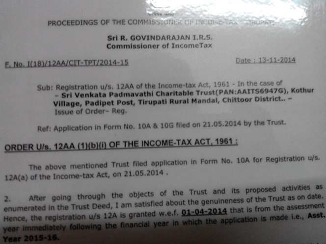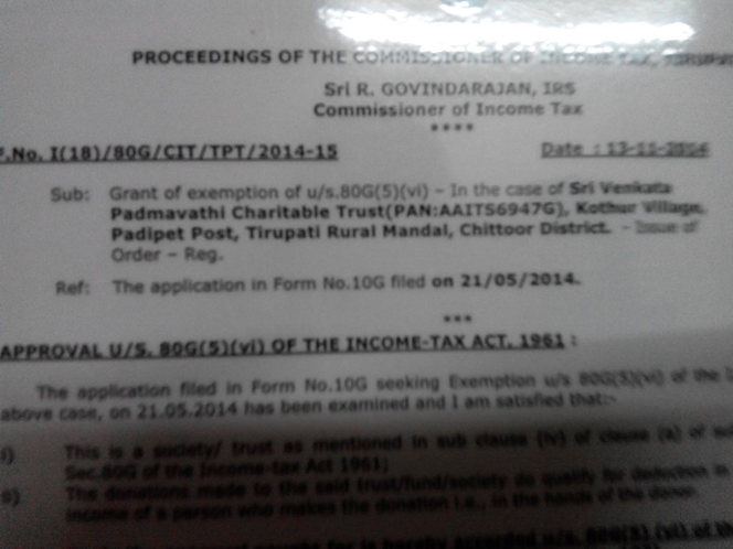 All Donation to SRI VENKATA PADMAVATHI CHARITABLE TRUST are exempt under section 80G / 12AA